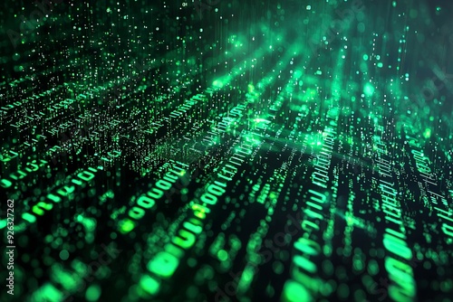 Green Dark Binary Code with Data Streaming Background created with Generative AI