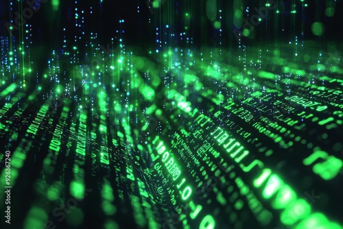 Green Dark Binary Code with Data Streaming Background created with Generative AI