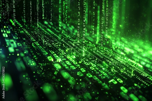 Green Dark Binary Code with Data Streaming Background created with Generative AI