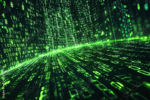 Green Dark Binary Code with Data Streaming Background created with Generative AI