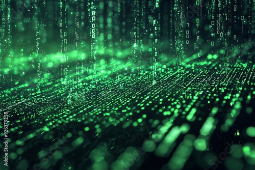 Green Dark Binary Code with Data Streaming Background created with Generative AI