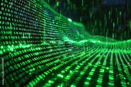 Green Dark Binary Code with Data Streaming Background created with Generative AI