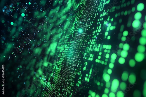 Green Dark Binary Code with Data Streaming Background created with Generative AI