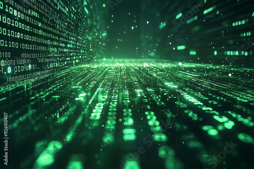 Green Dark Binary Code with Data Streaming Background created with Generative AI