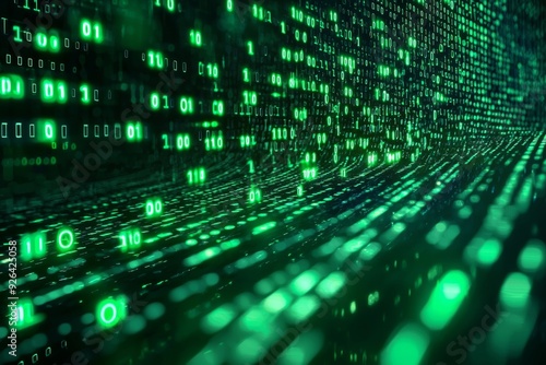 Green Dark Binary Code with Data Streaming Background created with Generative AI