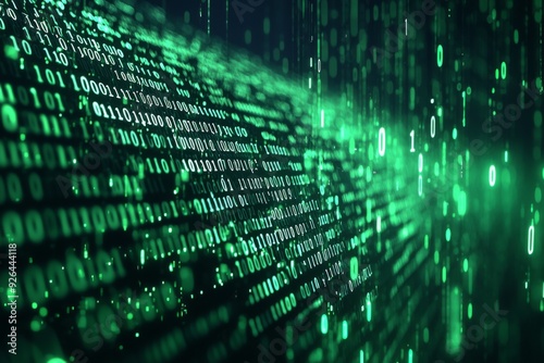 Green Dark Binary Code with Data Streaming Background created with Generative AI