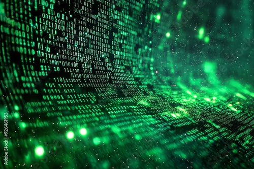 Green Dark Binary Code with Data Streaming Background created with Generative AI