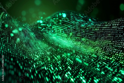 Green Dark Binary Code with Data Streaming Background created with Generative AI