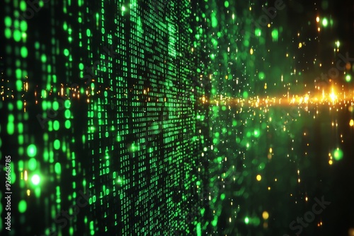 Green Dark Binary Code with Data Streaming Background created with Generative AI