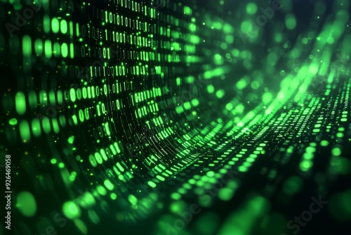 Green Dark Binary Code with Data Streaming Background created with Generative AI