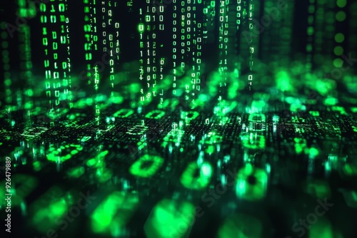 Green Dark Binary Code with Data Streaming Background created with Generative AI