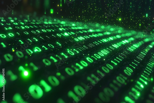 Green Dark Binary Code with Data Streaming Background created with Generative AI