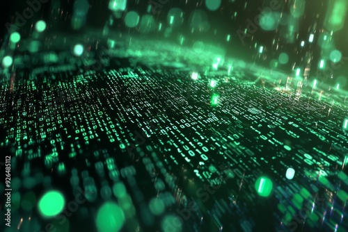 Green Dark Binary Code with Data Streaming Background created with Generative AI