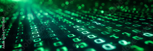Green digital binary data on computer screen background