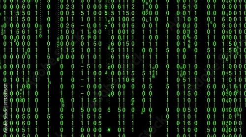 Green Digital Code hacking Wallpaper with Falling Numbers and Binary Patterns for Technology and Cyberpunk Background Themes