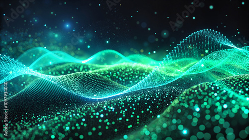 Green flowing waves, abstract digital design
