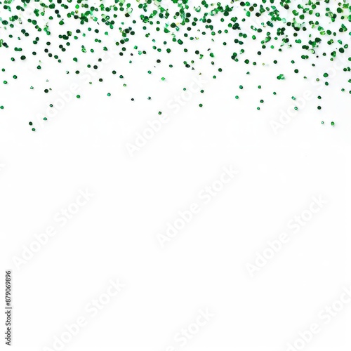 Green glitter on a white background
