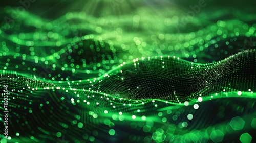 Green glowing particles form into a smooth wave pattern.