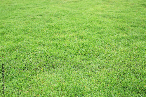 Green grass texture as background. Perspective view and selective focus