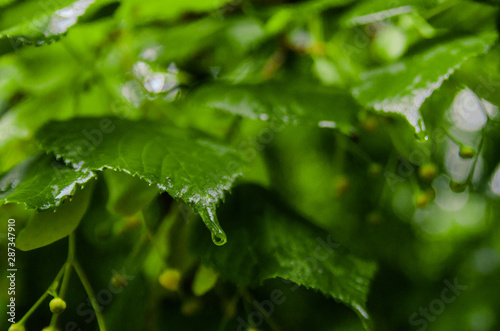 green leaves with raindrops