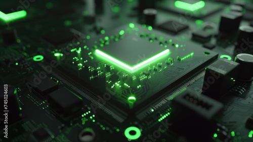 Green light circuit board. technology background computer central processor cpu concept Motherboard digital chip