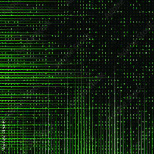 Green line Abstract digital pattern with green sparse binary pattern on Powerful black background. Modern vector illustration.