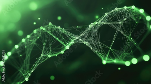 Green line connection point wave. Molecule background with DNA. Network concept with connecting points and lines. Modern technology elements.
