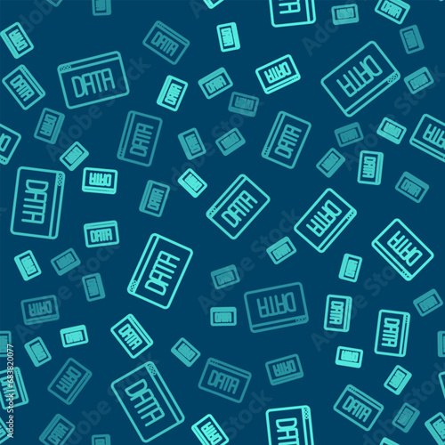 Green line Data analysis icon isolated seamless pattern on blue background. Business data analysis process, statistics. Charts and diagrams. Vector
