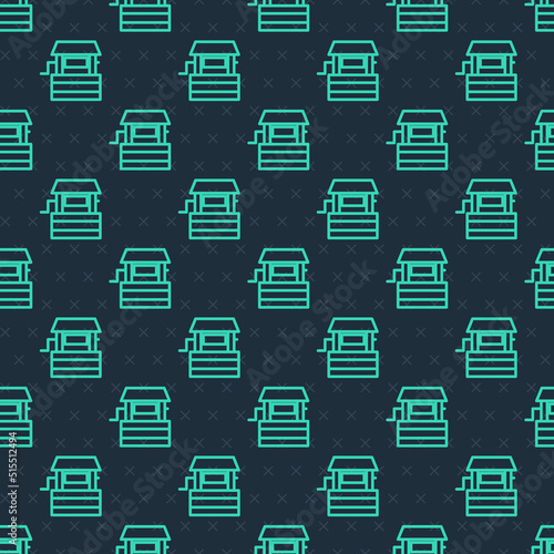 Green line Well icon isolated seamless pattern on blue background. Vector
