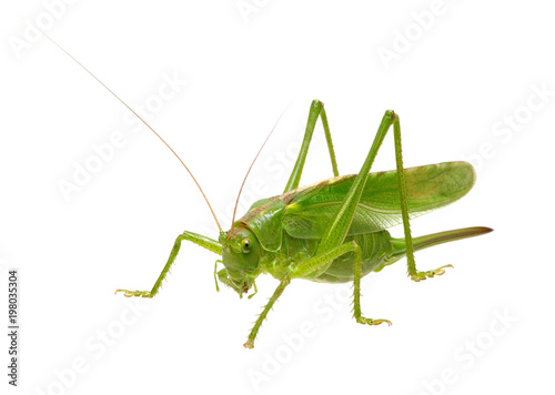 Green locust on white