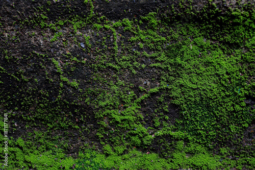 Green Moss Texture on Dark Stone Wall
