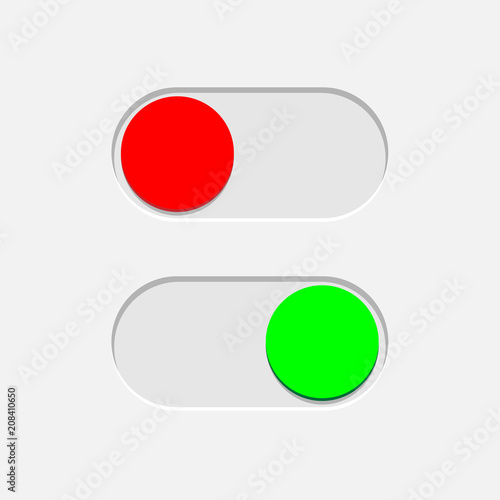 Green On and red Off toggle switch buttons isolated on gray background. Vector design element.
