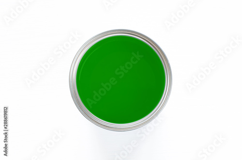 green paint pot isolated on white background top view