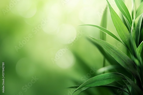 Green Plant Leaves Close Up with Bokeh Background for Nature Designs