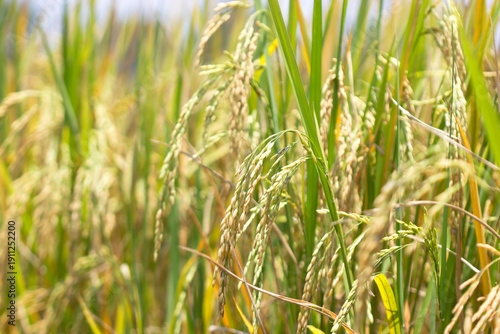 Green rice plants in the fields