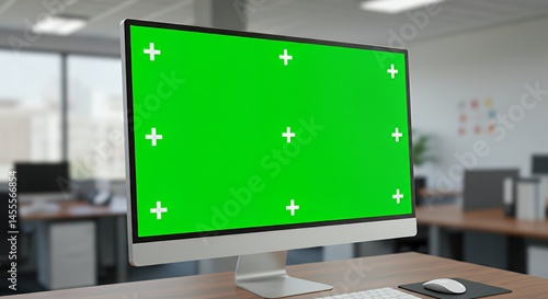 Green Screen Computer Mockup in Modern Office Setting
