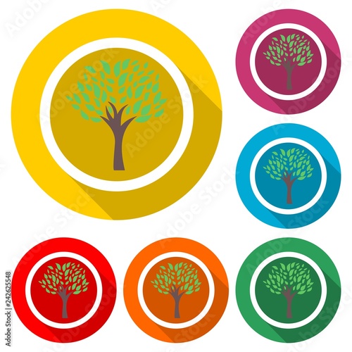 Green tree logo design icon or logo, color set with long shadow