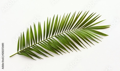 Green tropical palm leaf isolated on a white background, perfect for nature-themed designs