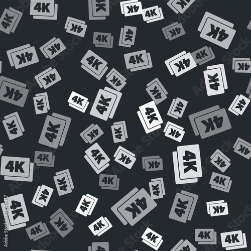Grey 4k Ultra HD icon isolated seamless pattern on black background. Vector