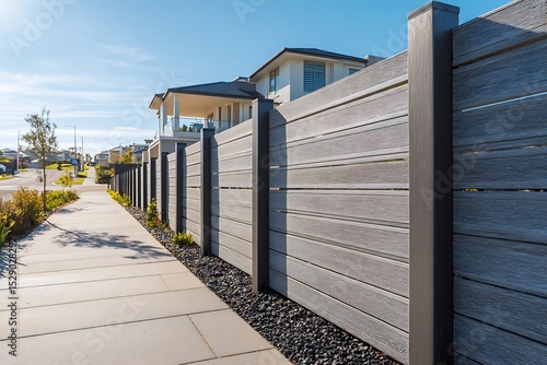 Grey Composite Fence With A House In The Background, Home Improvement, Landscape Design, Modern Architecture