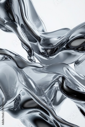 Grey Glossy Stream on White Background - Smooth Abstract Flowing Texture