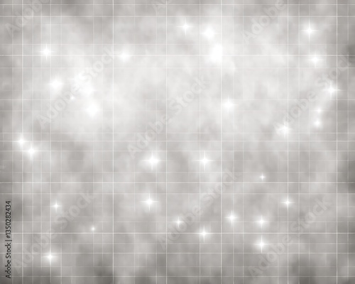 Grey grid background with glowing stars.