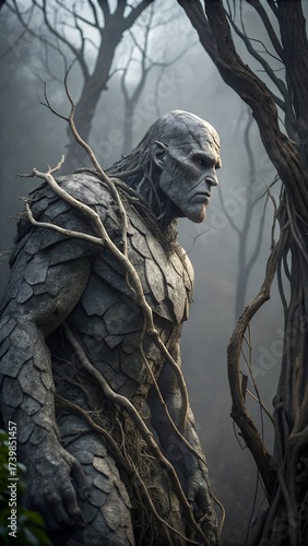 Grey Stone Monster with Tree Branches Horror Fantasy