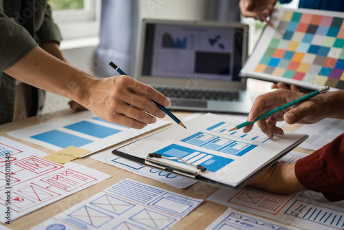 Group of asian creative team programing designers participate in all phases of the UX design.