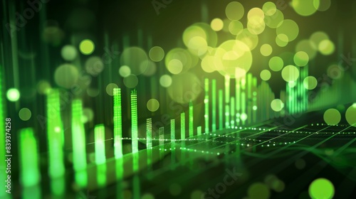 Growing green business chart on blurry background.