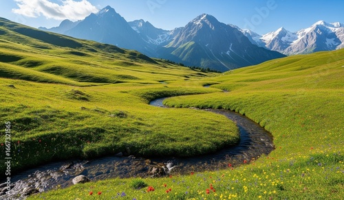 Grüne Alpenwiesen im Sommer