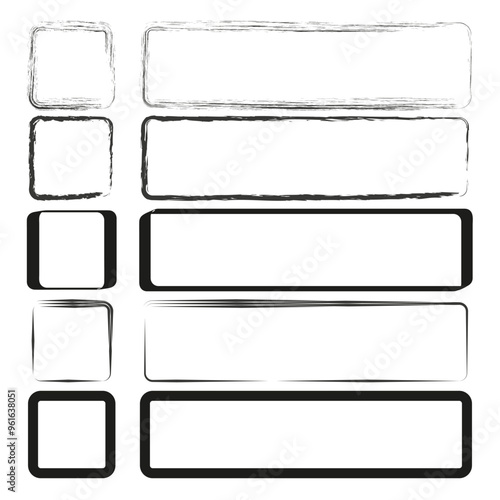 Grunge frame collection. Rectangular and square shapes. Hand drawn black outlines. Abstract vector design.