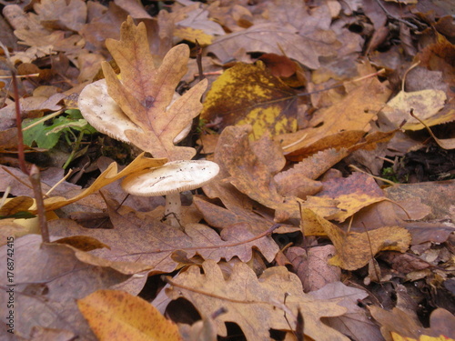 grzyb wśród liści