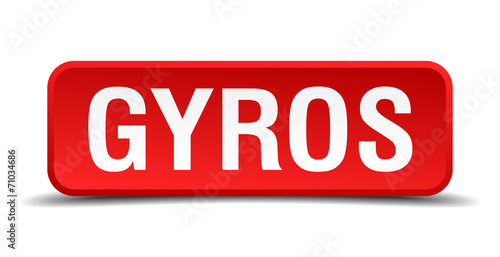 Gyros red 3d square button on white background