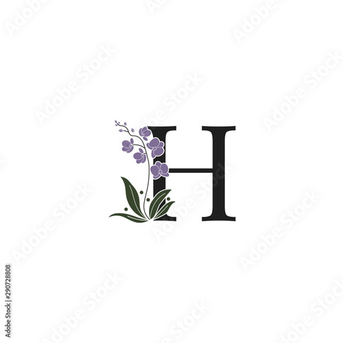 H initial unique modern creative elegant luxurious artistic with flower